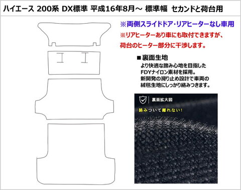 【P17倍 (9/1)限定】【次世代レザーマット】ハイエース 200系 DX標準 ラグマット セカンド1枚とセカンド下1枚と荷台用2枚、標準幅、両側スライドドア用