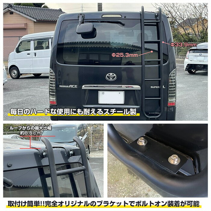 【4日20時より楽天スーパーSALE】ハイエース200系 TRH200 KDH200 リアラダー 改良版 簡単取付 ボルトオン オリジナル 梯子 ラダー ハシゴ キャリア バックドア ラック アウトドア キャンプ 社外 外装 スチール製 トヨタ カスタム パーツ【福山通運】
