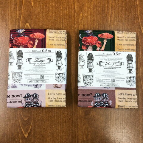 Ringo fabric Mushroom Cat/「きのこ猫」たちのお茶会への招待状をイメージした生地です/マッシュルームキャット招待状/カットクロス約110cm巾×50cmでの販売です/シーチング生地/入園入学/Cat Collection/きのこ猫からの招待状/リンゴファブリック/N22