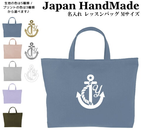ハンドメイド 名入れ レッスンバッグ マチ付き ( Mサイズ 40 × 30 ) イニシャル デザイン ( マリン / イカリ / くすみ カラー ) | 女の子 男の子 レッスン 絵本 レッスンバック 手提げ袋 手提げバ