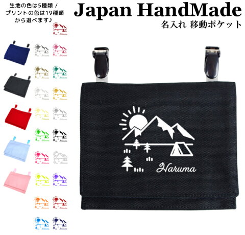 ハンドメイド 名入れ クリップ 着脱 移動ポケット ( 朝日 キャンプ 山 テント ) | 大きめ 女の子 男の子 かわいい シンプル おしゃれ 厚手 オックス マスクポーチ 付けポケット ポーチ ハンカチ エチケット 小