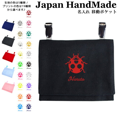 ハンドメイド 名入れ クリップ 着脱 移動ポケット ( てんとう虫 テントウムシ ) | 大きめ 女の子 男の子 かわいい シンプル おしゃれ 厚手 オックス マスクポーチ 付けポケット ポーチ ハンカチ エチケット 小学