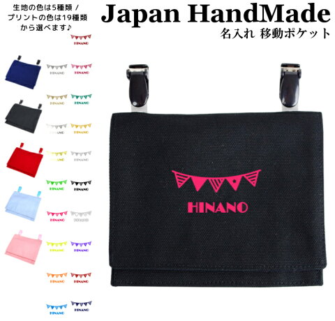 ハンドメイド 名入れ クリップ 着脱 移動ポケット ( ガーランド フラッグ 旗 ) | 大きめ 女の子 男の子 かわいい シンプル おしゃれ 厚手 オックス マスクポーチ 付けポケット ポーチ ハンカチ エチケット 小学