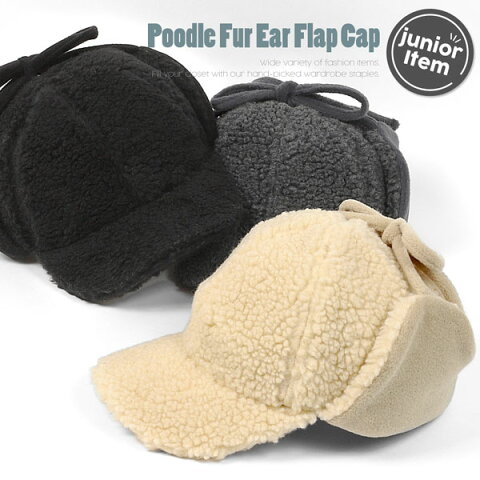 帽子 冬用 ジュニアサイズ プードルファー イヤーフラップキャップ 秋冬 【メール便 送料無料】 | キャップ ハット フライトハット フライトキャップ 防寒 保温 冬 雪 耳あて ジュニア 子供 チェック おしゃれ レトロ ボア エコファー フリース 裏フリース MHA 22113