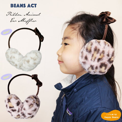 【あす楽対応】<新色>リボン付き アニマル イヤーマフラー 女の子 キッズ 子供 52~56cm 耳あて お洒落 お出かけ レオパード 防寒 通学 ボア ファー ジュニア用 小学生 秋冬 プレゼント ギフト 誕生日 クリスマス