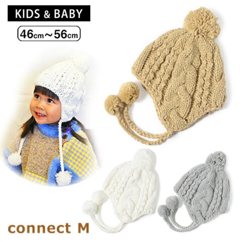クーポン有!!connectM 耳あて付きニット帽[ベビー・キッズ・ジュニア]46〜56cm ケーブル編みニットキャップ ウィンター 耳当て付き 子供 秋冬 CM-6102 帽子 楽天ランキング第1位 メール便可
