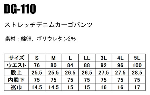 S(76)〜LL(88) 3L(92)〜5L(100)デニムカーゴパンツ D.GROWDG-110の商品詳細 俺たちはまだ、俺たちの限界を知らない。