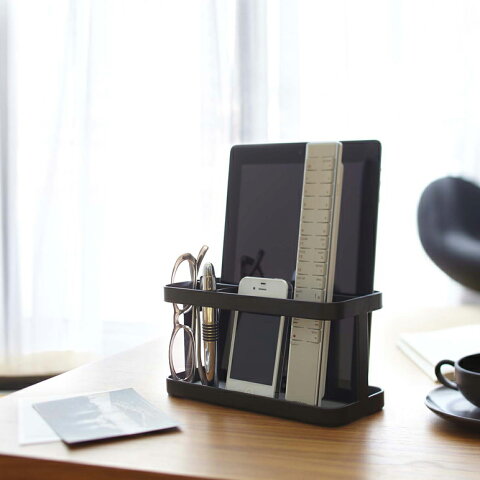 商品説明 奥には様々なサイズのタブレットPCがすっきり収納でき、手前にはリモコン、携帯電話、ペン、メガネ、DMなど、リビングまわりの小物をまとめて収納することができます。