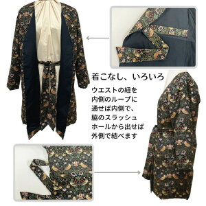 表地にはウイリアム モリスの “いちご泥棒” 柄、裏地には黒のオーガニックコットンを使用。