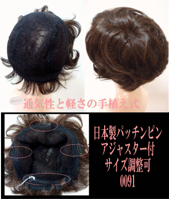 医療用フルウィッグ 人毛ミックス (人毛30%日本製耐熱(180℃迄)ファイバー70%) ミセス向きロールカールウェーブ 0091 総手植え 分け目は自由に変えれます。