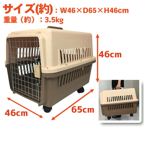 ペットキャリー ケース Lサイズ 中型犬 ハードタイプ 外出用 ケージ ゲージ 犬小屋 65×46×46cm キャスター付き