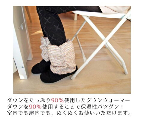【ダウンウォーマー】本体:ナイロン100%本体詰め物:ダウン90% フェザー10%本物の暖かさ!ダウン90%使用したダウンレッグウォーマー!1.中綿にダウン90%を使用(羽毛は、吸湿放湿・保温性に大変優れているので、とっても暖かくサラッと快適。
