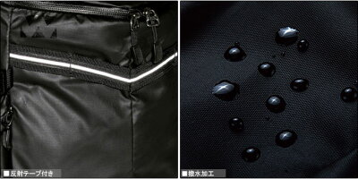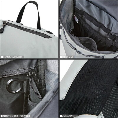 ●取り出しやすいフロントやメイン収納部などたくさんのポケットを採用し、分別収納が可能! ●背面には蒸れにくいパネルを使用! ●撥水加工で急な天候の変化にも安心です。