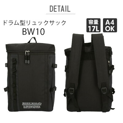 リュック メンズ 大容量 定番 シンプル 通学 通勤 リュックサック 17l 旅行 部活 スポーツ 合宿 キャンプ アウトドア スクエアリュック バックパック ドラム型デイパック BODY WOLF ボディウルフ BW-10