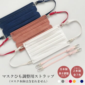 ●国産 ●カラー/ホワイト、グレー、ライトピンク、ルージュ、オレンジ、ライトブルー、ネイビー ●サイズ/ストラップ長さ11cm〜19cm ●材質/クリップ:樹脂製(PES・PC・POM)ゴムひも:ポリエステル・ポリウレタン ※ストラップ長さにはクリップ部分は含みません。