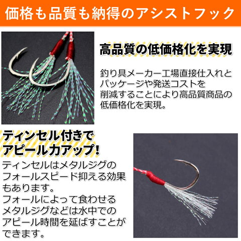 アシストフック ダブル 10個セット メタルジグ ティンセル 付き 釣具 ショアジギング お買い得10個セットです。