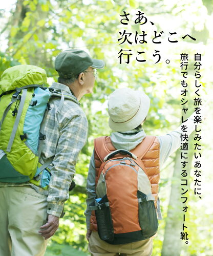 旅日和コンフォートシューズ[アシックス商事]脱ぎ履きから歩行までを考慮した楽しい旅行にかかせない定番コンフォートシューズです。