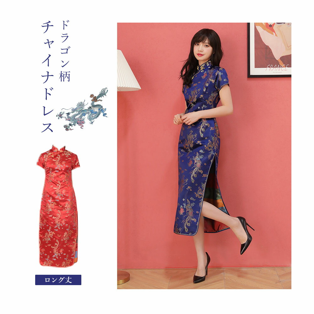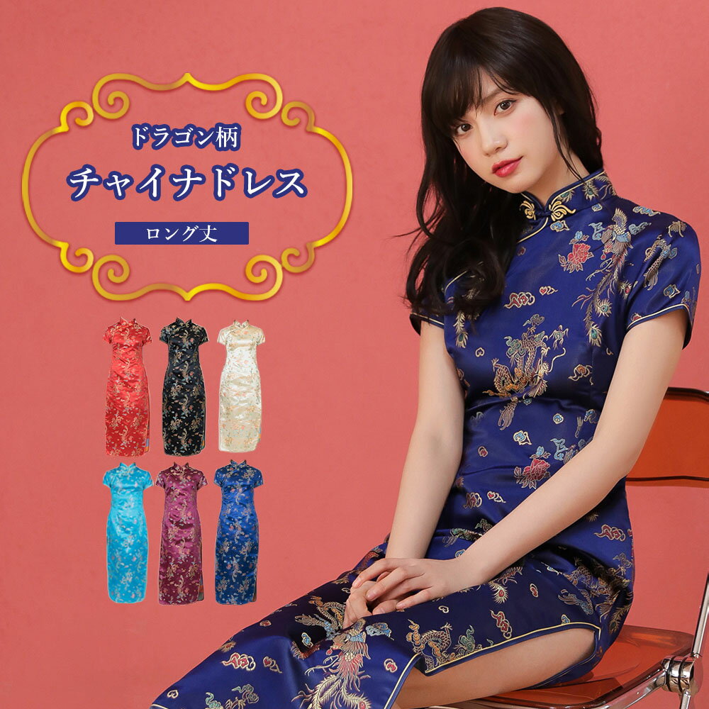 ハロウィン コスプレ チャイナドレス チャイナ服 コスプレ チャイナ コスプレ チャイナドレス 衣装 仮装 セクシー 龍柄 ロング 龍 ドラゴン ロングスカート ロング丈 ロングドレス 半袖 タイトスカート チャイナ サテン かわいい 可愛い スリット 本格的