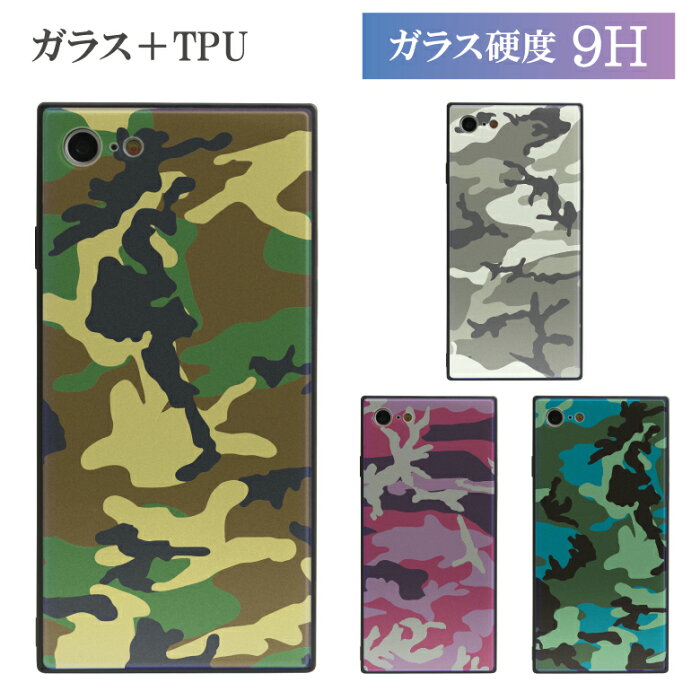 No186 迷彩 ハイグロッシー レクタングル iPhone対応 ガラスケース iPhone X iPhone8 iPhone7 スマホケース 持ちやすい 強化ガラス ミリタリー カモフラ 密林柄 クール 緑 青 グレー アーミー グリーン 迷彩柄 ピンク 偏光ガラス アイホン X オシャレ d:coo