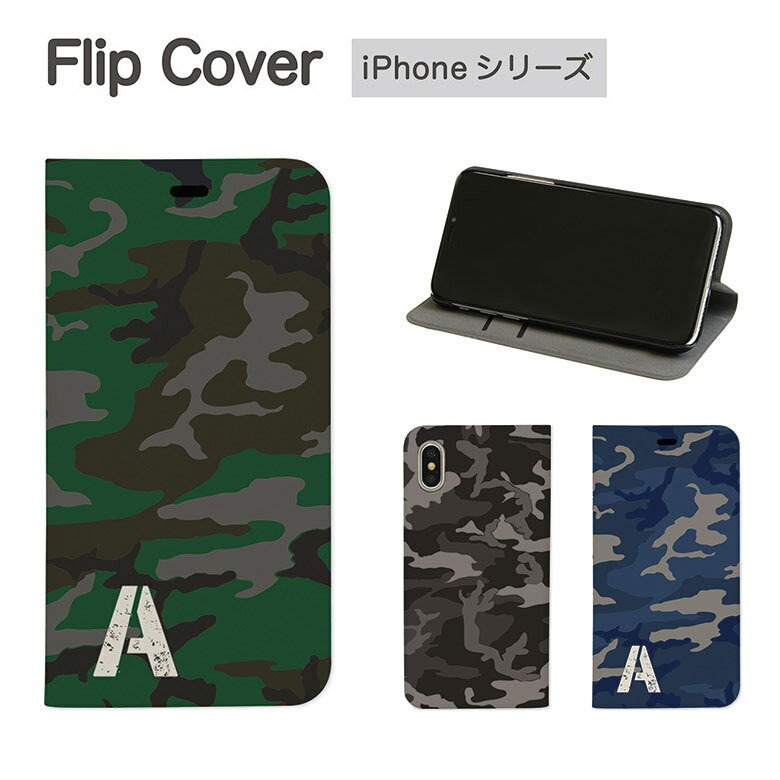 スマホケース iPhone 7 iPhone6s 対応 手帳型 ケース スタンド式 迷彩 イニシャル | iPhone7ケース アイフォン7 ケース カモフラ アーミー ミリタリー かわいい クール ブルー グリーン ブラック かわいい おしゃれ