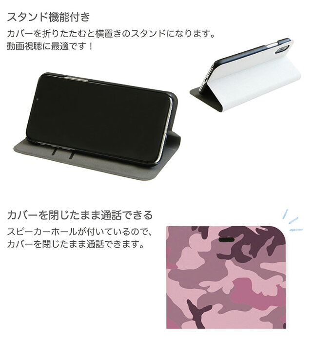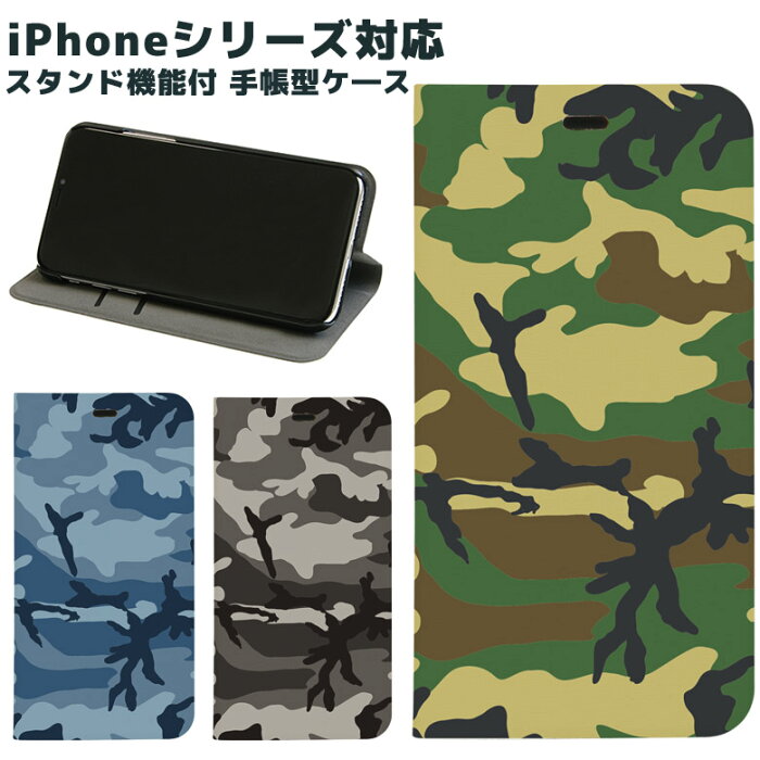 当店オリジナル商品 迷彩 手帳型スマホケース iPhone X iPhone8 iPhone7 iPhone6s iPhone SE iPhone5s カードポケット スタンド機能付き カモフラ 密林柄 グリーン ピンク グレー ブルー アーミー ミリタリー