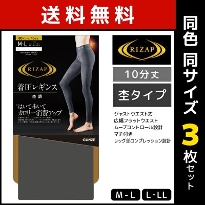 送料無料 同色3枚セット RIZAP ライザップ 杢タイプ 着圧 レギンス 10分丈 グンゼ GUNZE | 着圧レギンス タイツ スパッツ レディース コンプレッション ウォーキングレギンス 圧着 加圧 補正 補整 フットレス 補正下着 カロリー消費 ウォーキング ヨガ ウエスト 引き締め