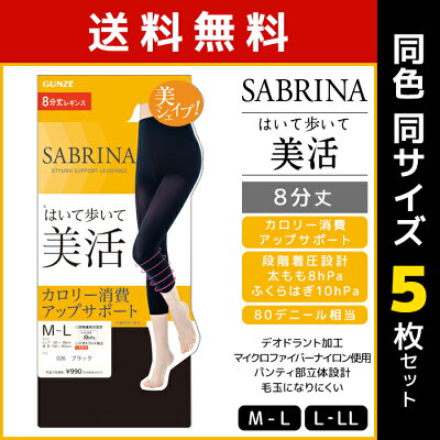 送料無料 同色5枚セット SABRINA サブリナ はいて歩いて 美活レギンス 8分丈 レギンス 着圧 グンゼ GUNZE | 着圧レギンス スパッツ 圧着 加圧 圧着レギンス 加圧レギンス ウォーキングレギンス ウォーキング 補正 補整 レディース ボトムス 補正下着 コンプレッション タイツ