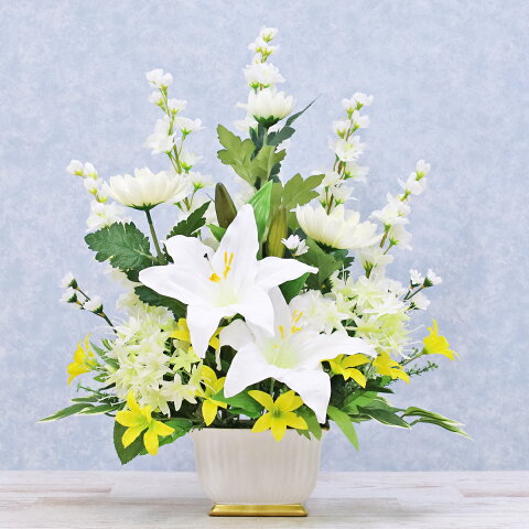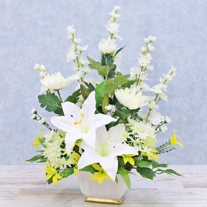 造花 仏花 カサブランカとデルフィニウムのアレンジ CT触媒 光触媒 造花 シルクフラワー お彼岸 お盆 お仏壇 仏花 お墓 花 お供え