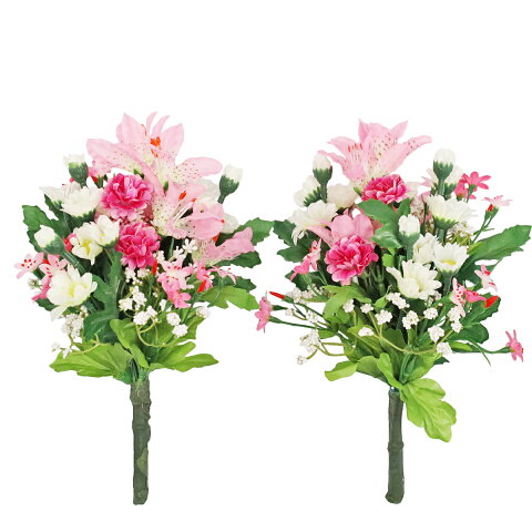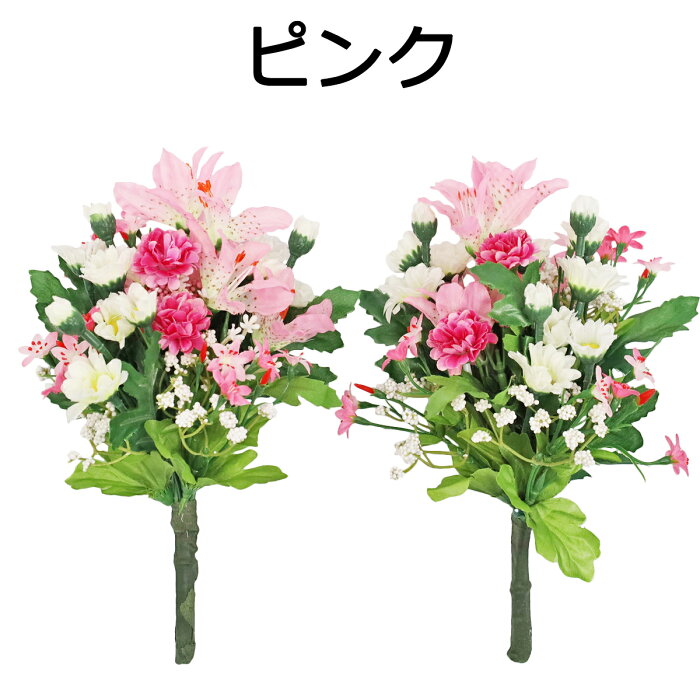 造花 仏花 ユリと小菊の小花束一対 選べる4種類 仏壇用 リリー CT触媒 光触媒 シルクフラワー お彼岸 お盆 お仏壇 お墓 お供え 山久