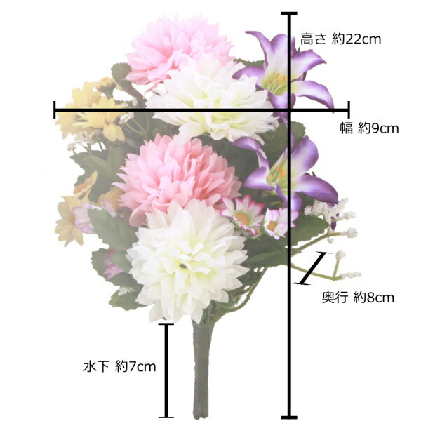 シルクフラワー(造花)の花束は、生の墓花とは異なり、猛暑が続く夏の屋外でも枯れることがなく、水替えなどのお手入れも不要で清潔できれいな状態が長く続きます。