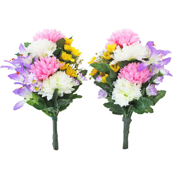 造花 仏花 可愛らしいエゾ菊とミニリリーの小花束一対 仏壇用 CT触媒 光触媒 シルクフラワー お彼岸 お盆 仏花 お墓 花 お供え 山久